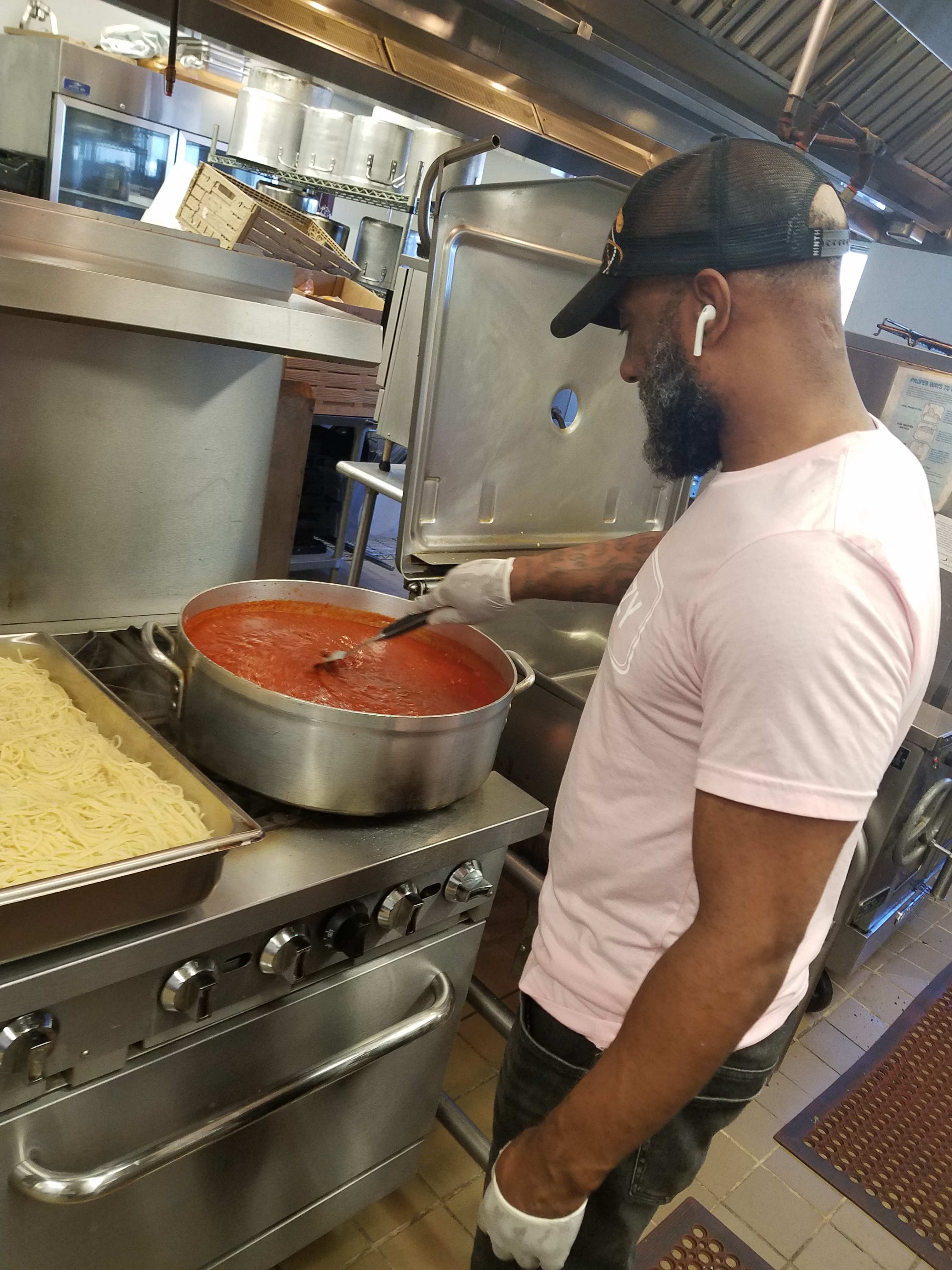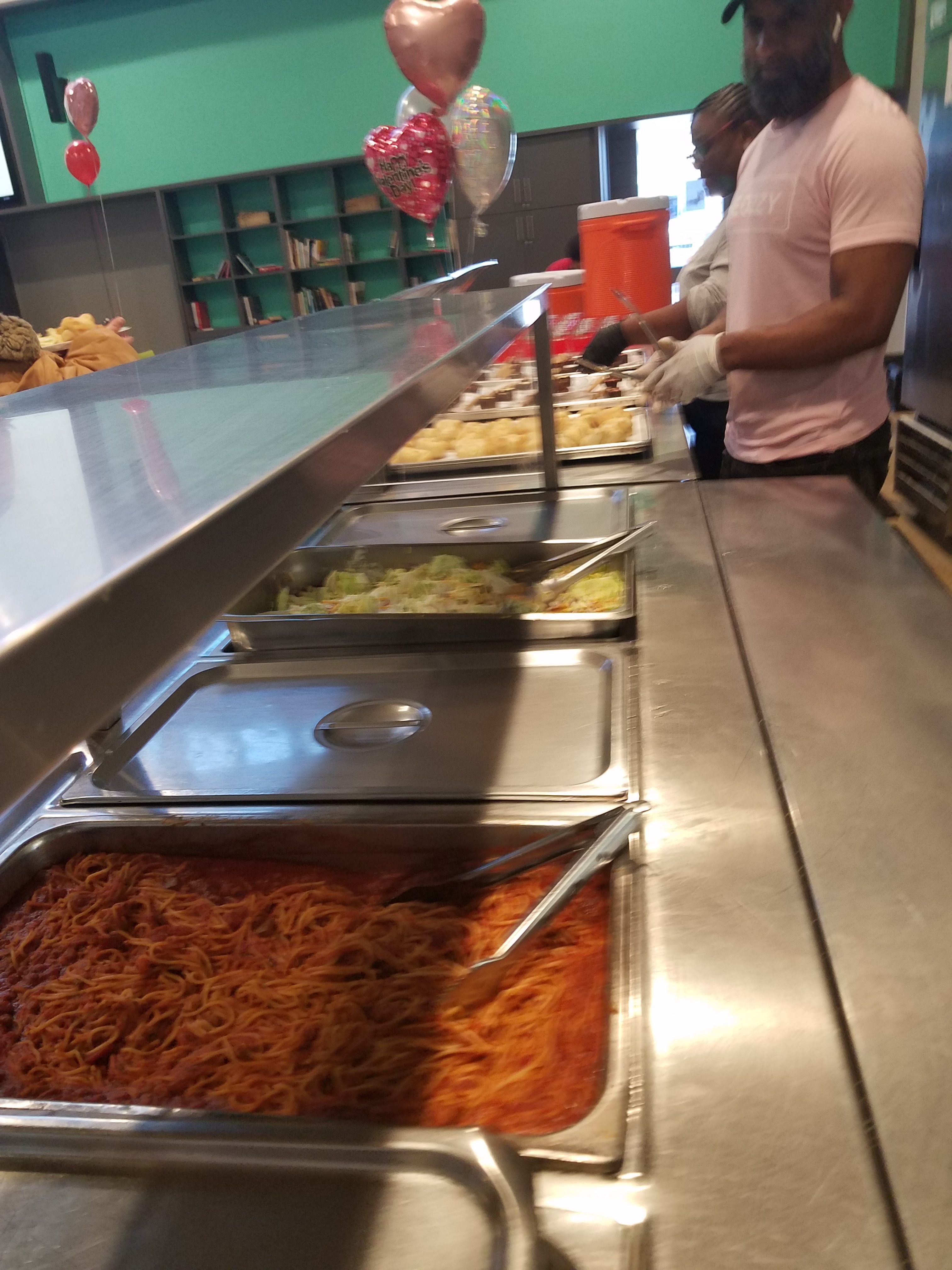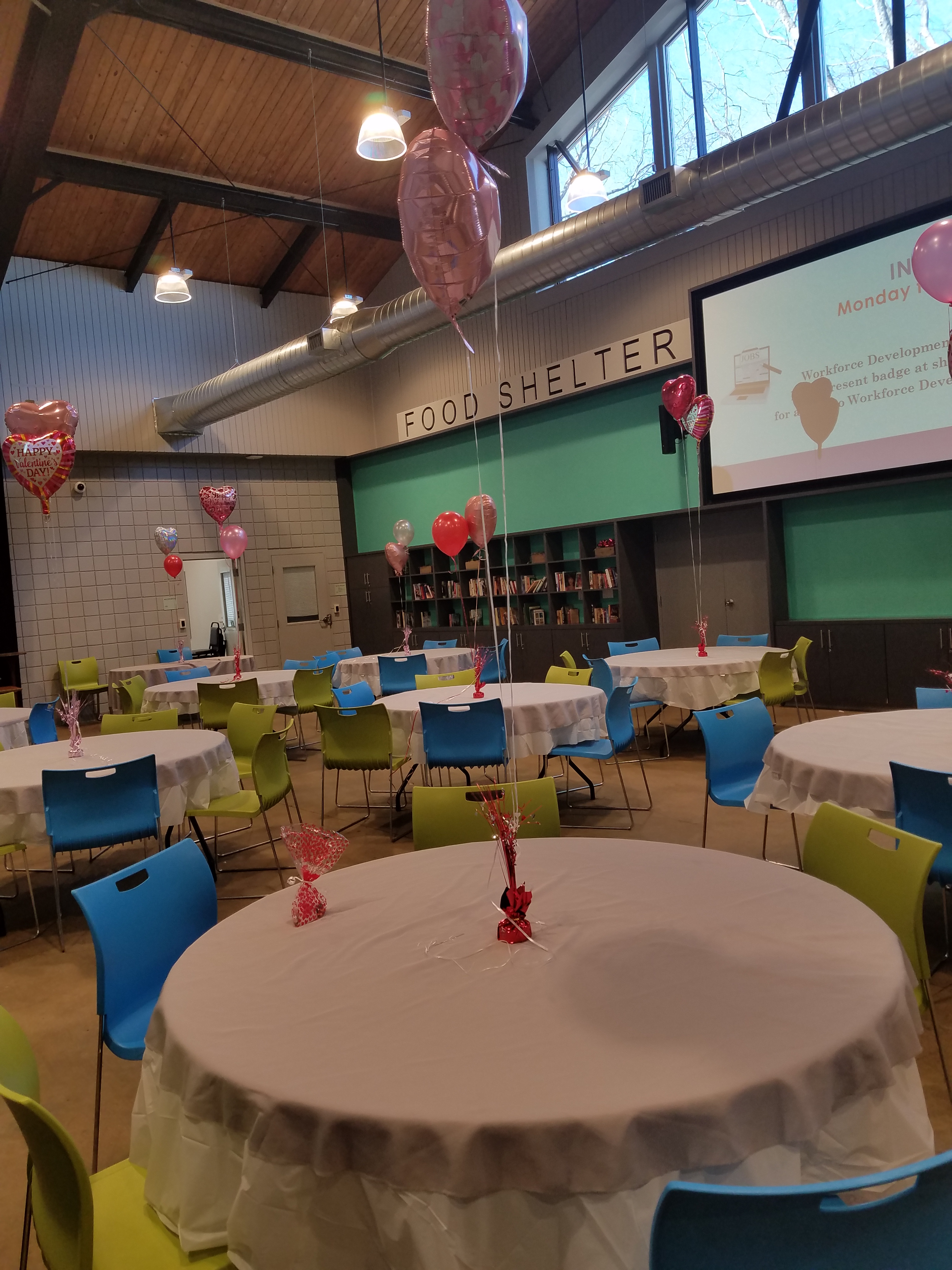 Our team of volunteers was able to cook and serve a meal for 75 people from the homeless community and were able to have a great experience networking with each other while doing so. We set up the room, covered the tables and decorated to make the experience complete.