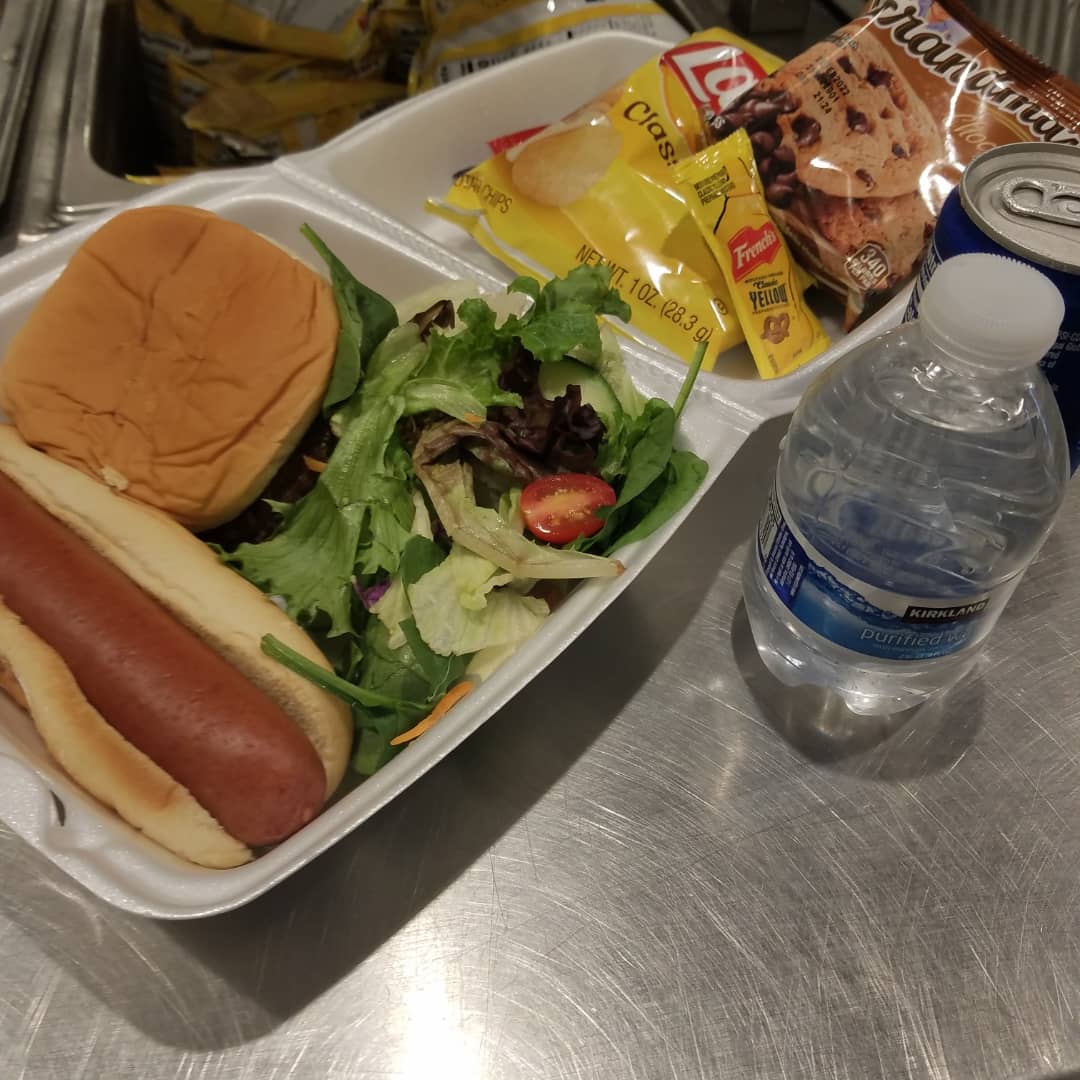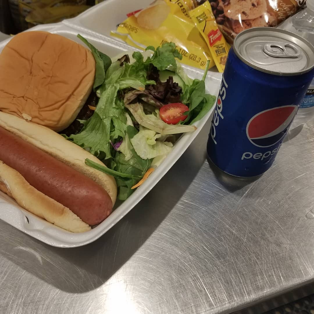 Our Menu consisted of a “cookout style” meal. We made 1/4 hamburgers and hotdogs, we had salad, chips, dessert items, water, and soft drinks.