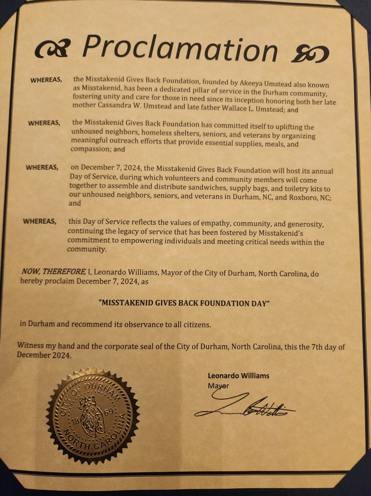 On Saturday, the focus shifted to preparation and distribution. Our Founder also received a proclamation from the Mayor of Durham to commemorate the occasion.
